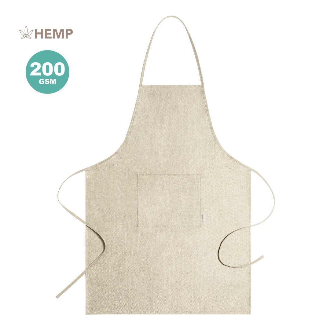 Delantal de línea nature, fabricado en 100% tela de cáñamo de 200g/m2 obtenida de la planta Cannabis, cuyos procesos tanto de cultivo como de obtención de fibras son respetuosos con el medio ambiente, dando como resultado un tejido de gran resistencia, de origen natural y sostenible. Con bolsillo frontal y cintas de ajuste, de corte por debajo de la rodilla. Distintivo HEMP en etiqueta.