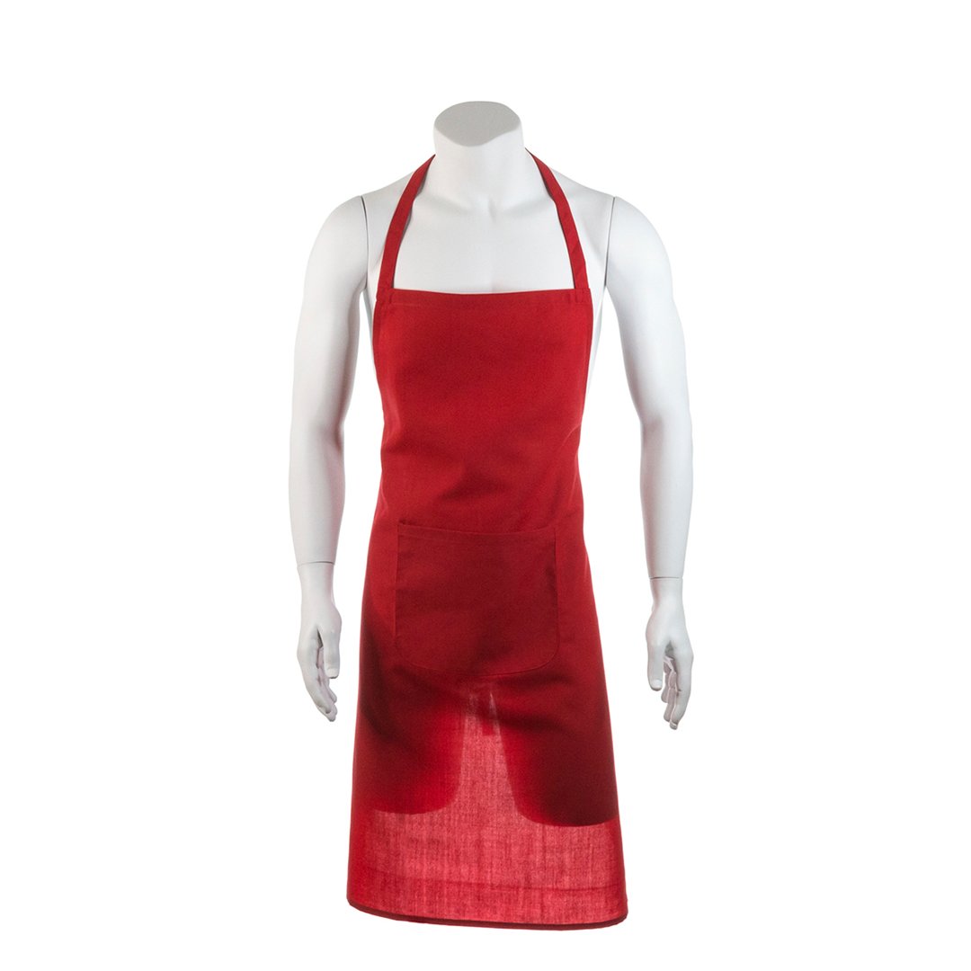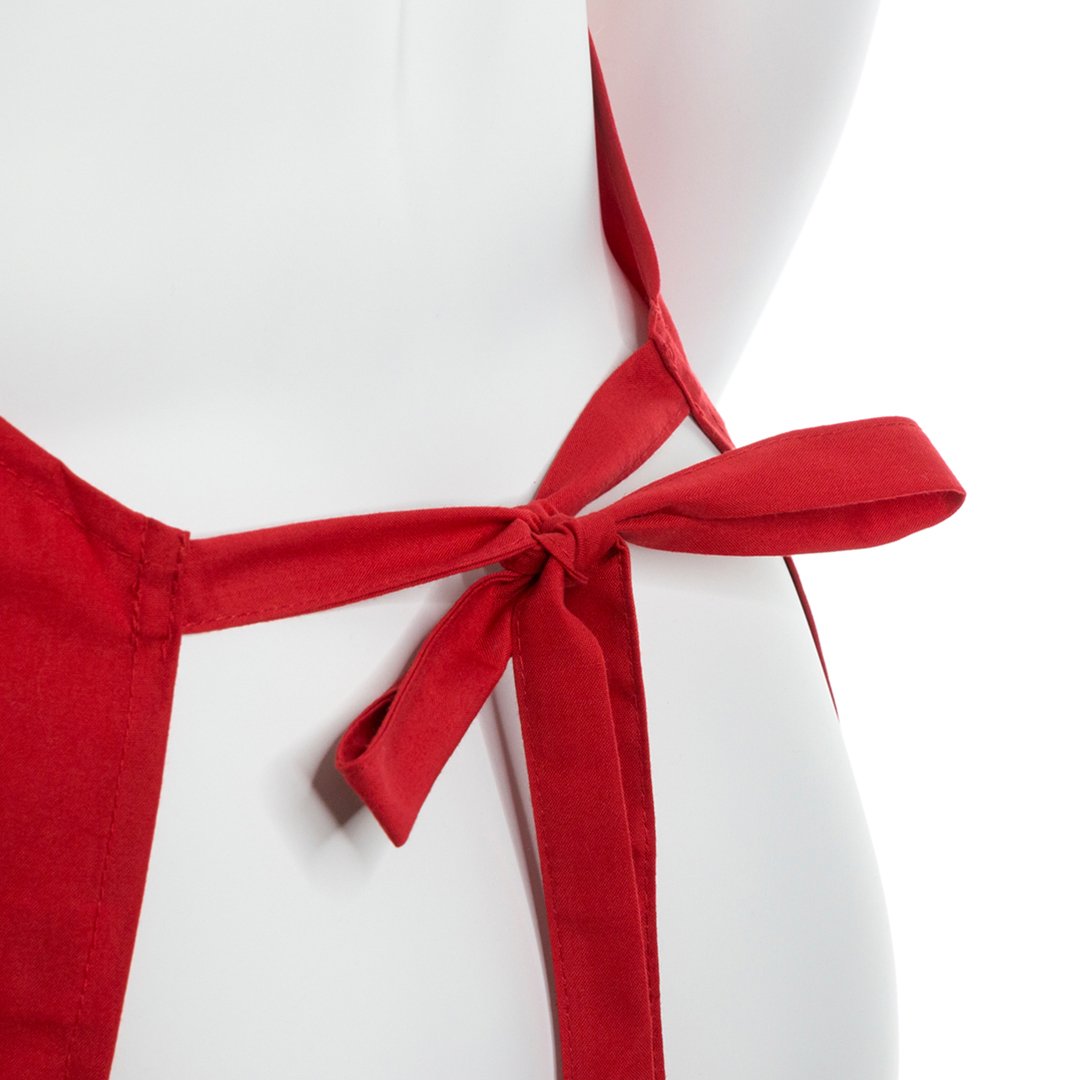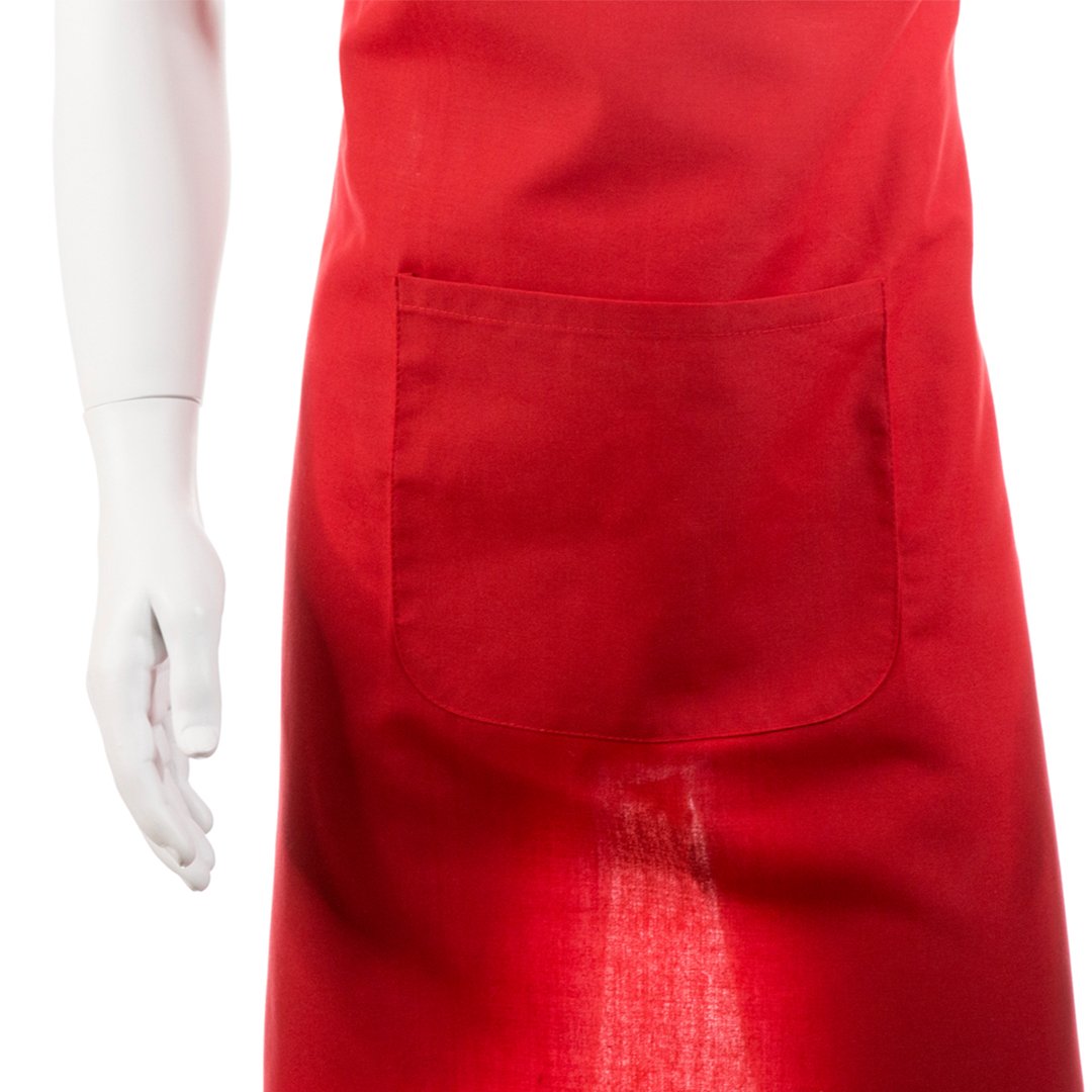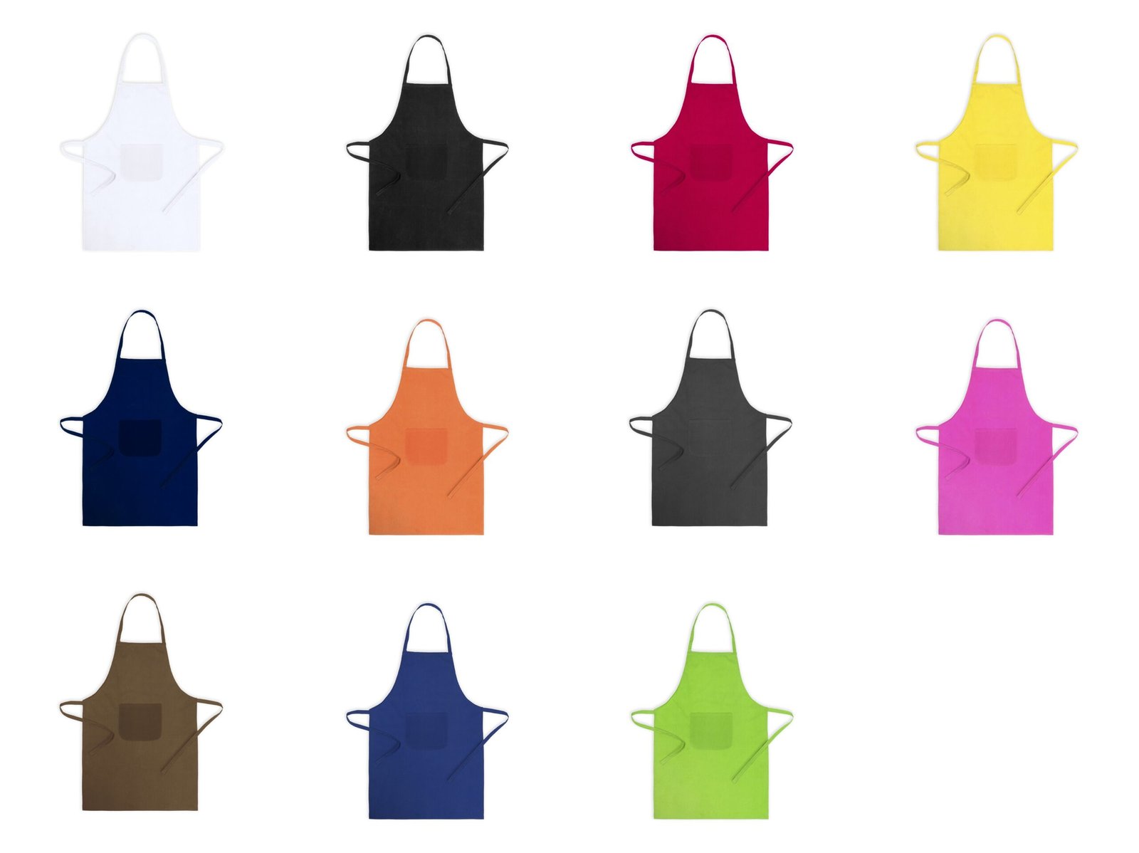 Delantal fabricado en tejido TC, combinación de algodón y poliéster. En el frontal incluye un práctico bolsillo, con cordones ajustables en la cintura y corte por debajo de la rodilla. Disponible en amplia gama de colores.
