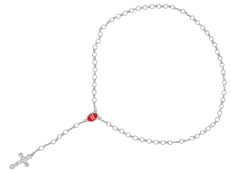 El clásico rosario con cuentas de madera y cruz con relieve.