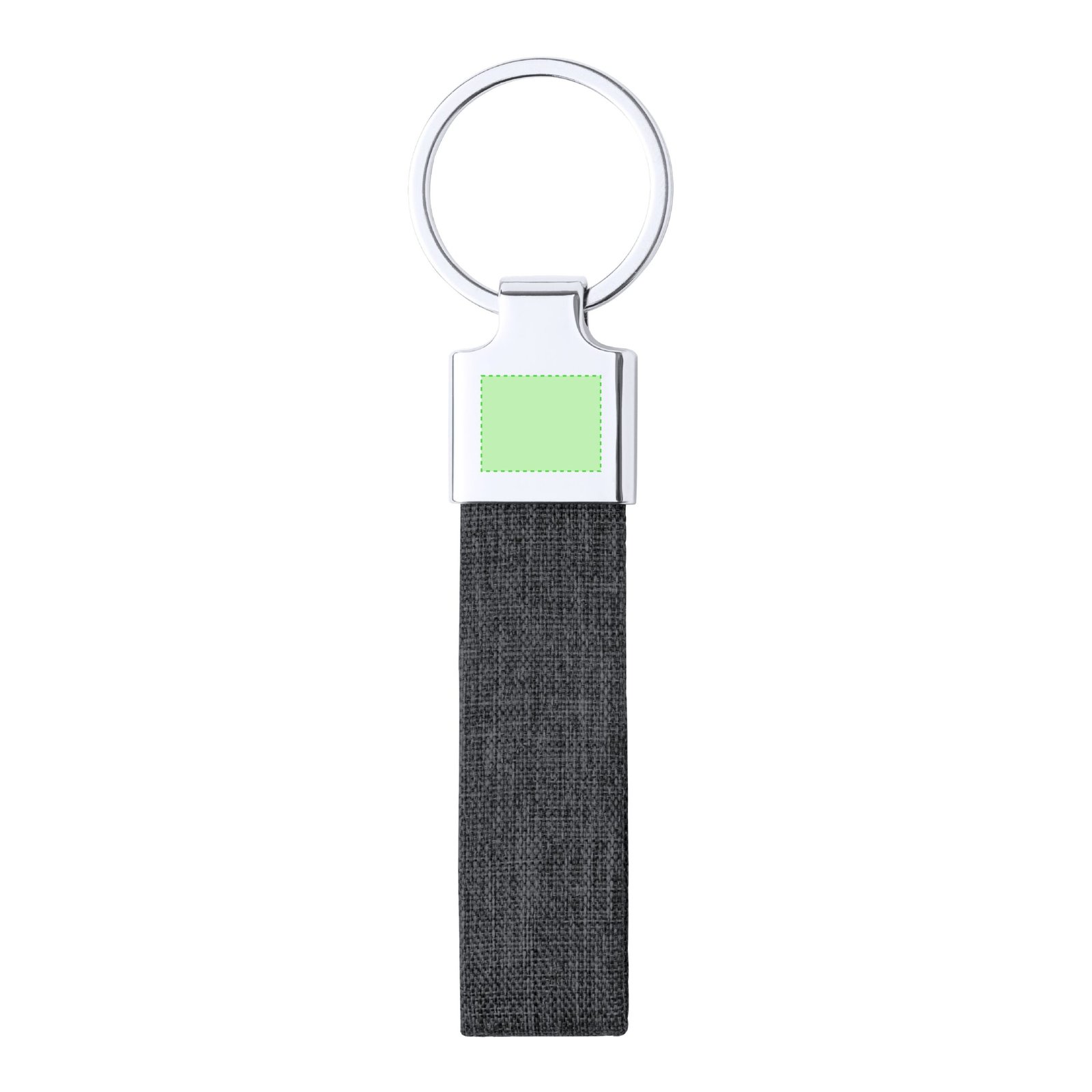 -Llavero en RPET de acabado color negro bitono y accesorios cromados.